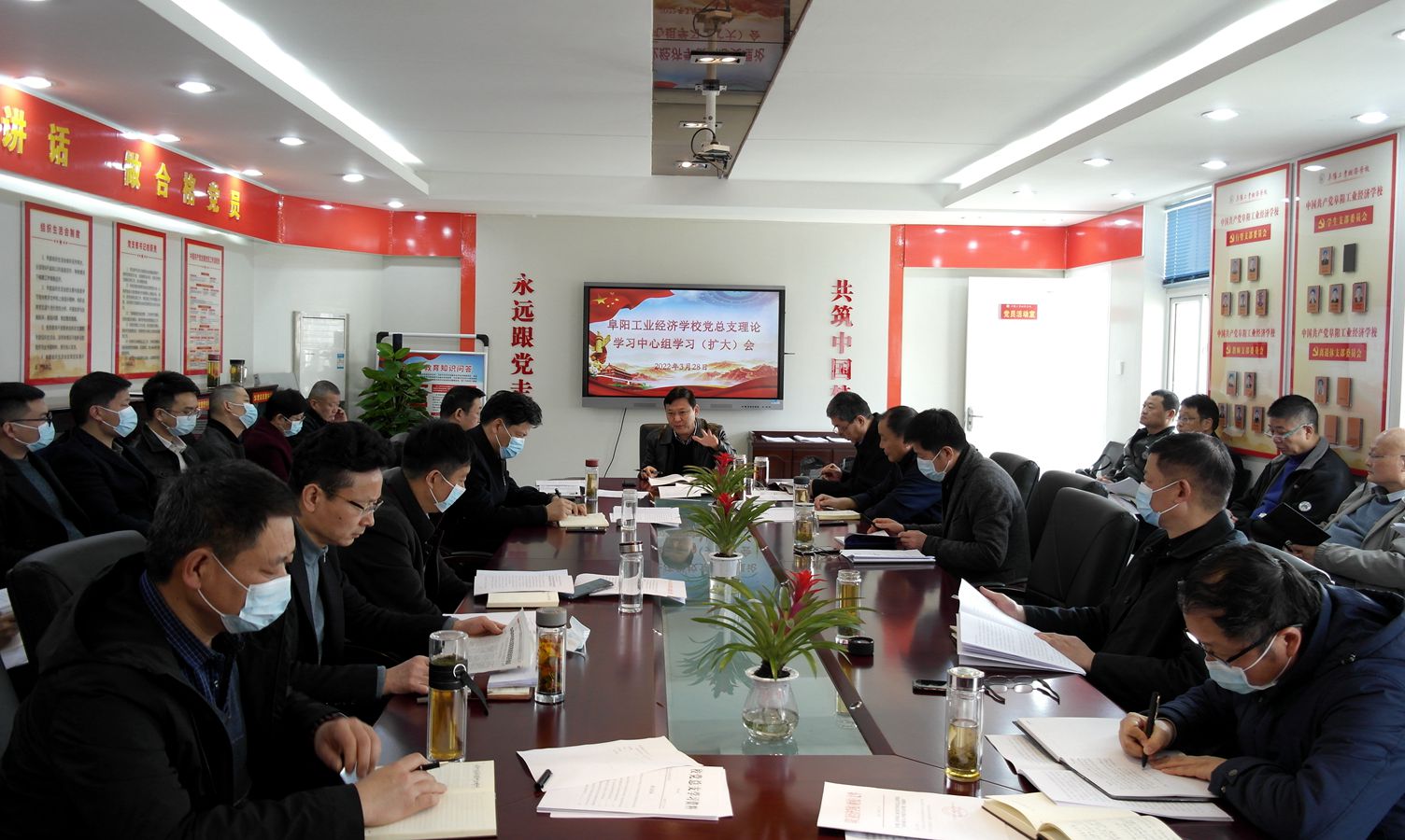 3月28日,阜阳工业经济学校召开党总支理论学习中心组学习(扩大)会,校班子成员、各科室负责人参加会议。会议由校党委书记、校长周波主持。