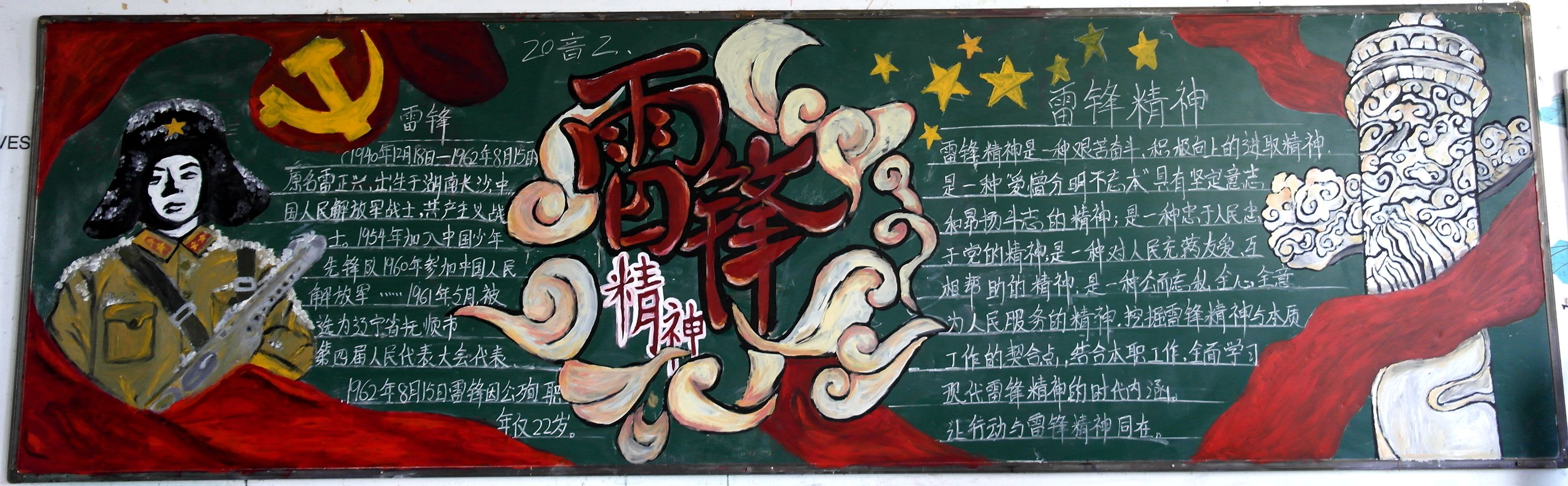 为大力弘扬“奉献、友爱、互助、进步”的志愿服务精神,推进校园文化建设,营造文明、助人为乐的校园氛围,以第59个“学雷锋志愿服务日”为契机,校团委组织开展两校区以“传承红色基因,弘扬雷锋精神”为主题的黑板报(手抄报)活动。