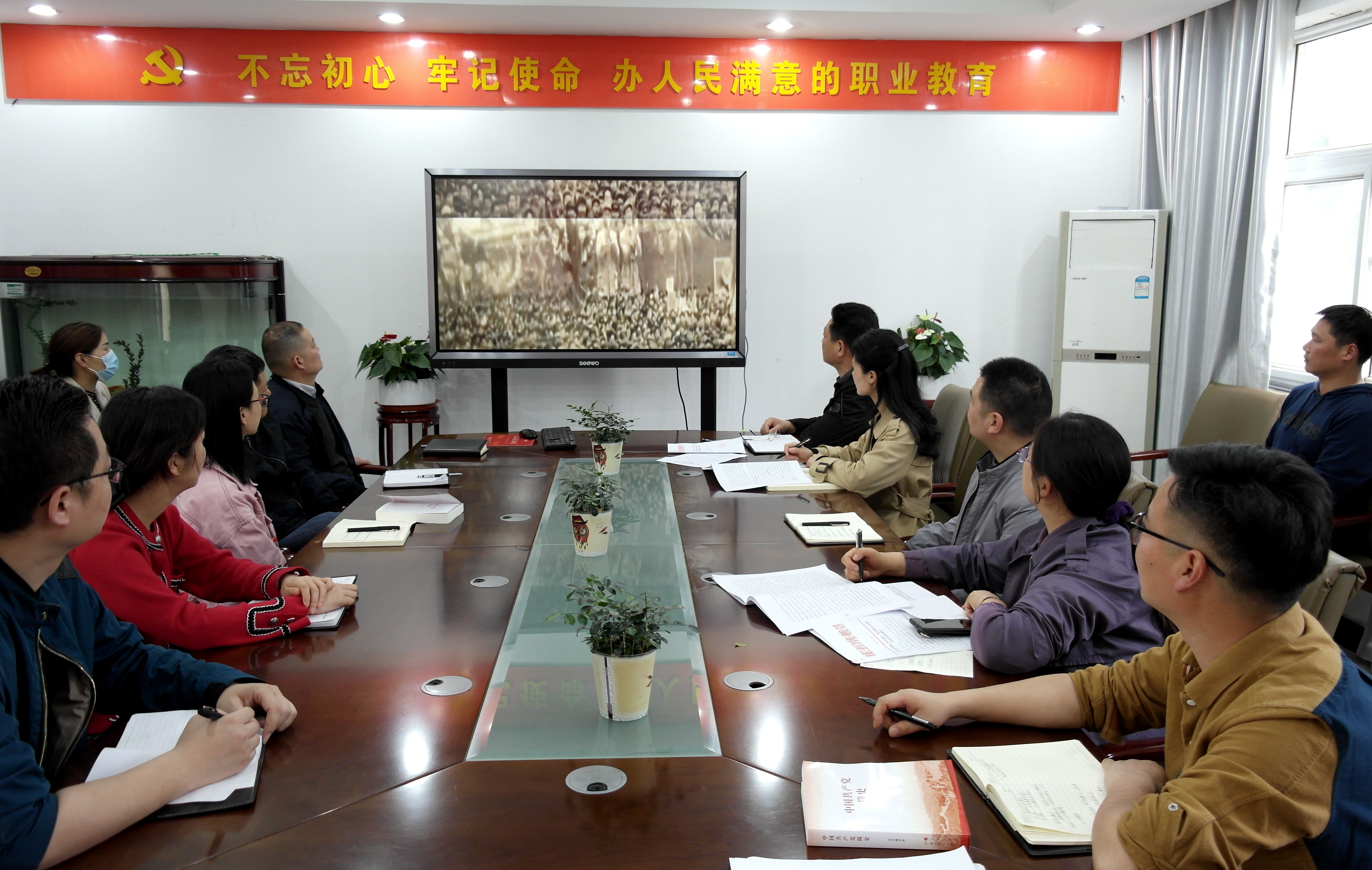 会议学习了习近平总书记在党史学习教育动员大会上的重要讲话精神、传达了我校开展党史学习教育实施方案、就进一步推进《阜阳工业经济学校关于开展“青少年学党史”活动方案》、关于在日常生活中践行“我为群众办实事”实践活动的通知等工作作出部署,观看了《百年风华》系列短视频。大家围绕主题,积极发言,分别从党史学习的意义、内容、要求和目的、学习方法等方面阐述了各自的观点和意见,现场气氛热烈。