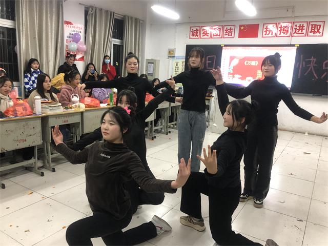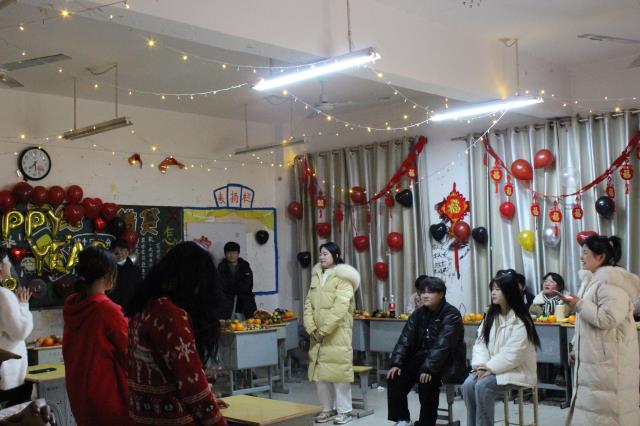 彩灯、彩条、气球、横幅……各班精心准备,同学们把自己的“家”装扮一新,处处洋溢着节日的气氛,呈现出新年的气息。晚会均由各班学生自己精心组织、排练,并由学生自主开展。各班同学们认真准备节目,热情高涨,充分发挥自己的特长,表演自己最拿手的节目。班级里充满着同学们的欢声笑语,节目形式多种多样,内容丰富多彩。