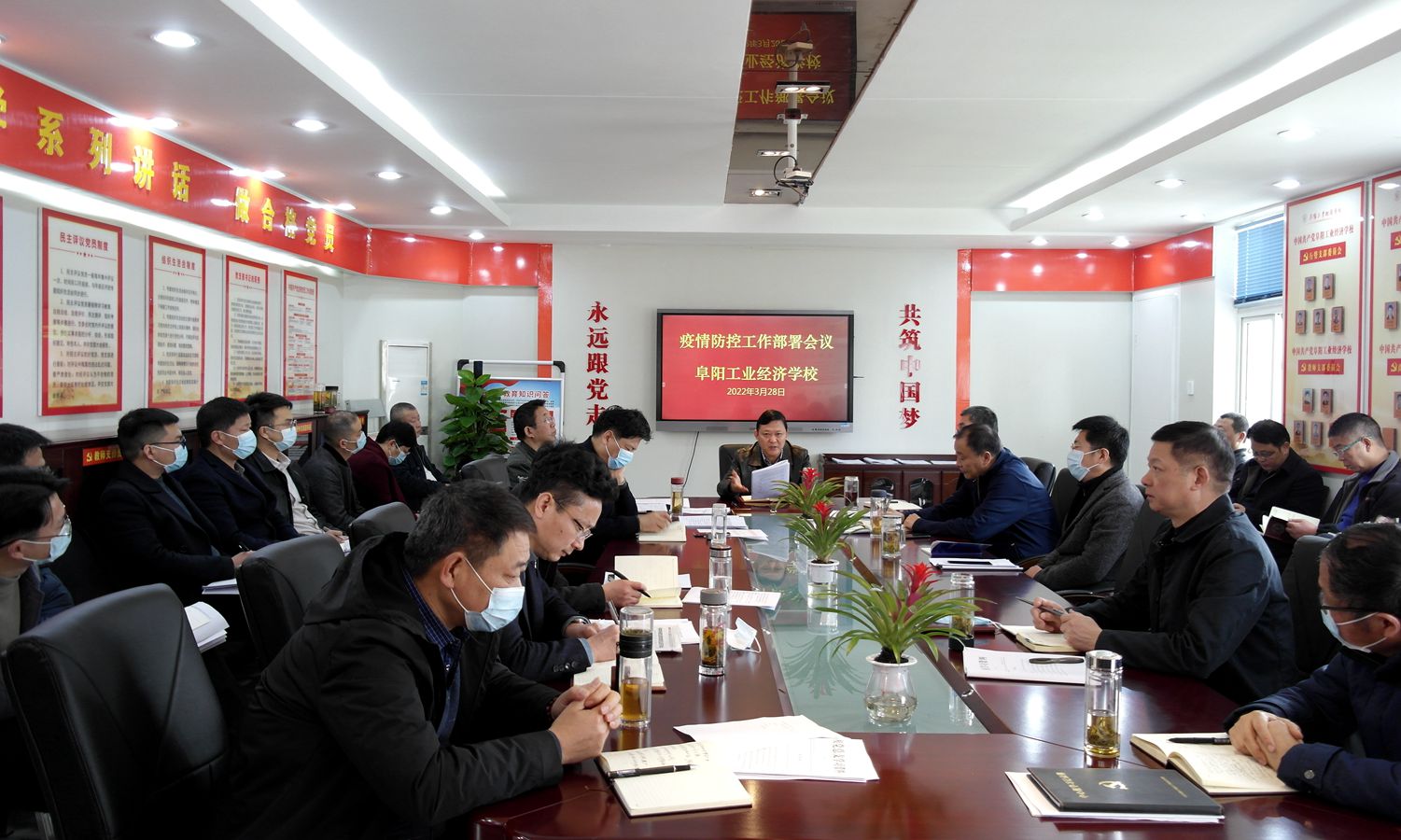 3月28日上午,阜阳工业经济学校召开疫情防控工作部署会议,校班子成员、各科室负责人参加会议。会议由校党委书记、校长周波主持。