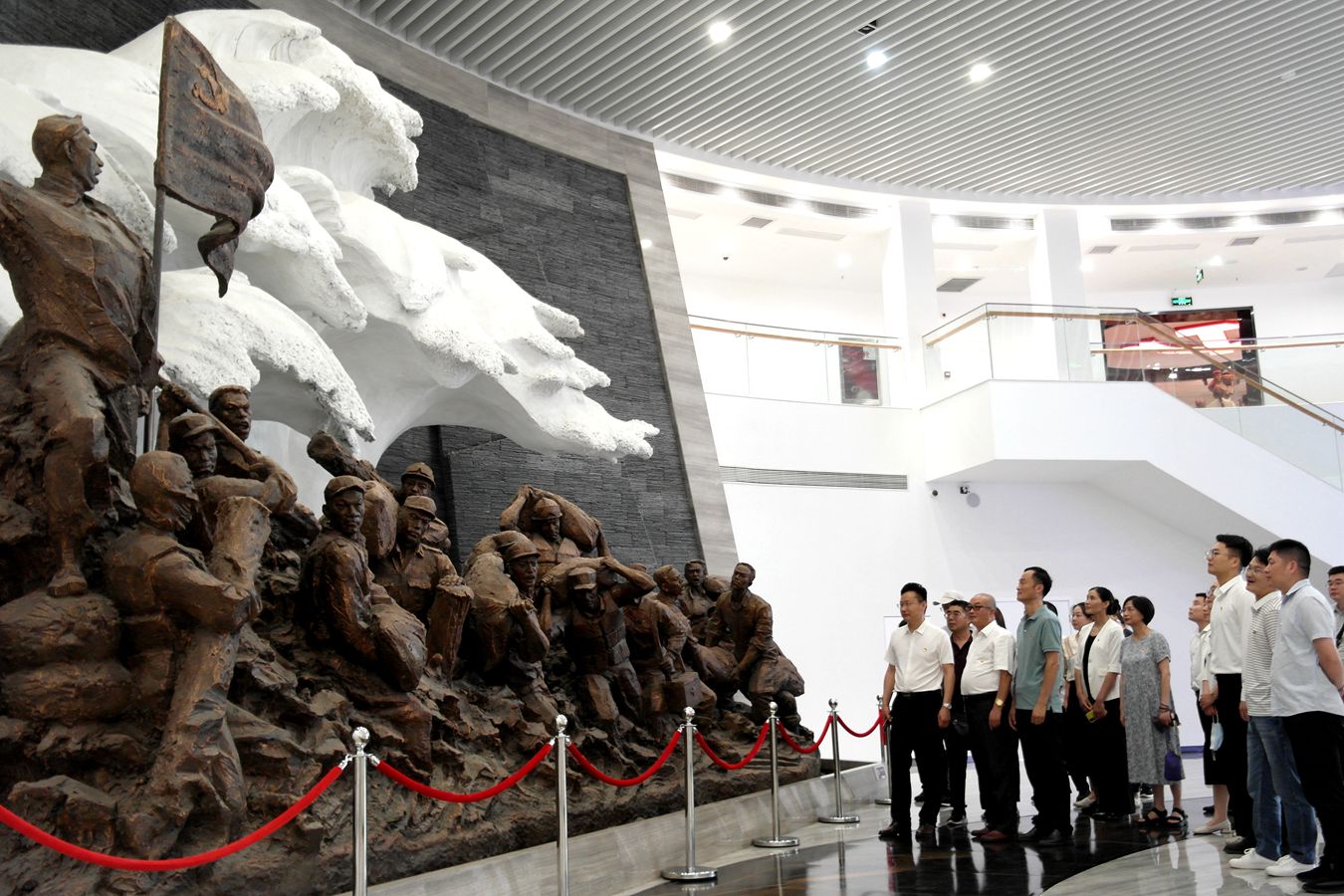 在王家坝抗洪纪念馆,通过讲解员的娓娓道来,大家了解到王家坝闸自1953年建成以来16次开闸蓄洪,为保卫淮河安澜发挥了重要作用。面对一幅幅图片、一件件实物,大家重温了淮河治理、抗洪抢险、生产自救、领导关怀的光辉历程,共同感悟顾全大局、自强不息、同舟共济、科学治水的王家坝精神。