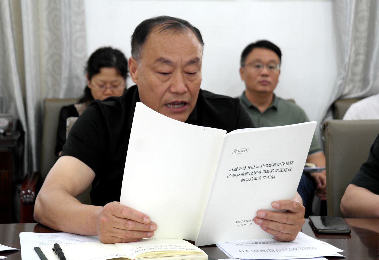 德育学科组负责汇报了新学期思想政治课统编教材使用及思政课教师统编教材培训工作开展情况,教研室负责人汇报了我校课程思政工作开展情况,思政课教师代表宋灿老师就学校思想政治理论课教学的感想、计划及意见作了交流发言。会议审议通过了《阜阳工业经济学校思想政治理论课教学改革实施方案》。