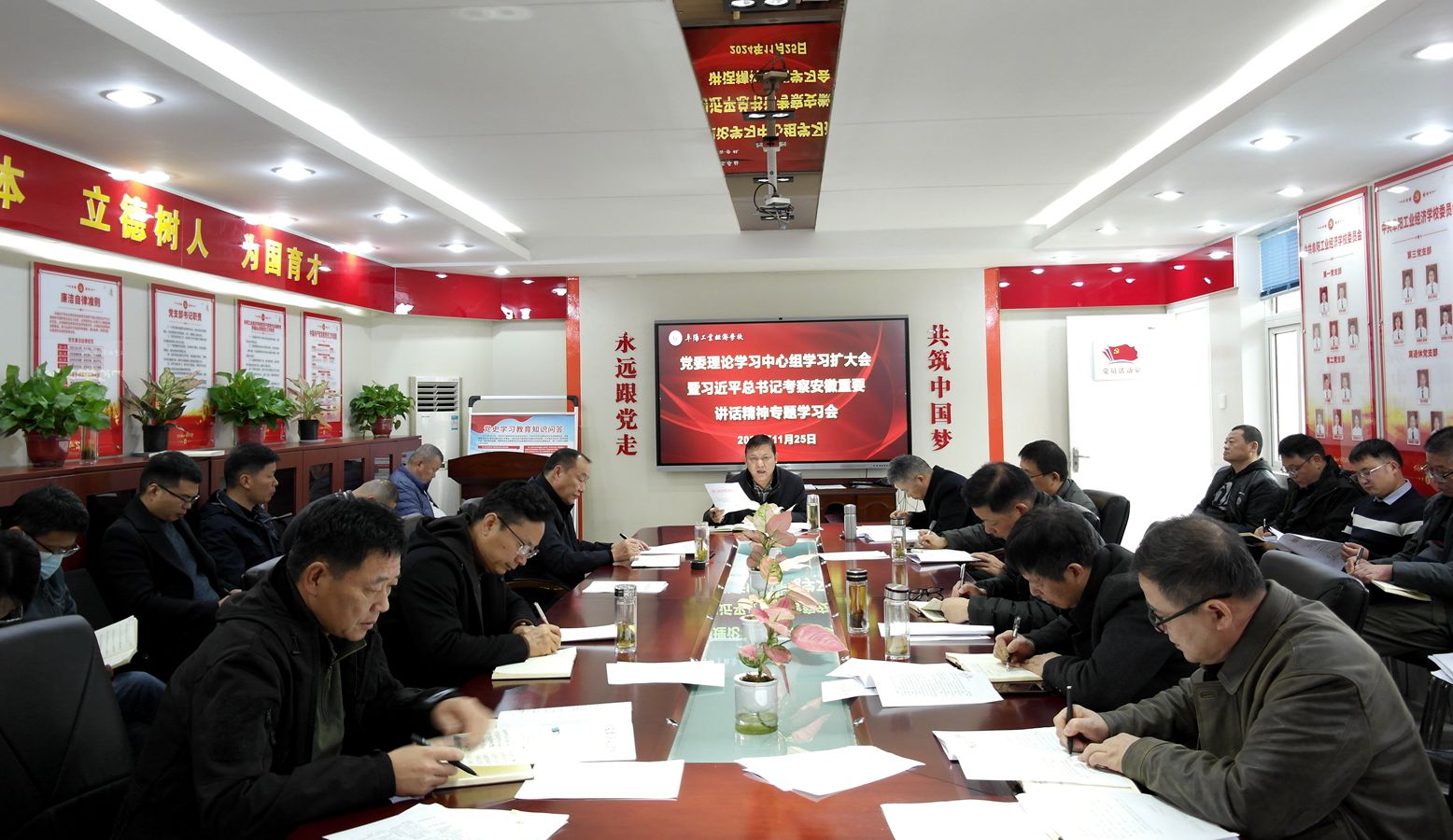 11月25日,阜阳工业经济学校召开党委理论学习中心组学习扩大会暨习近平总书记考察安徽重要讲话精神专题学习会,校党委书记周波主持会议并讲话。校班子成员、各科处室负责人参加会议。