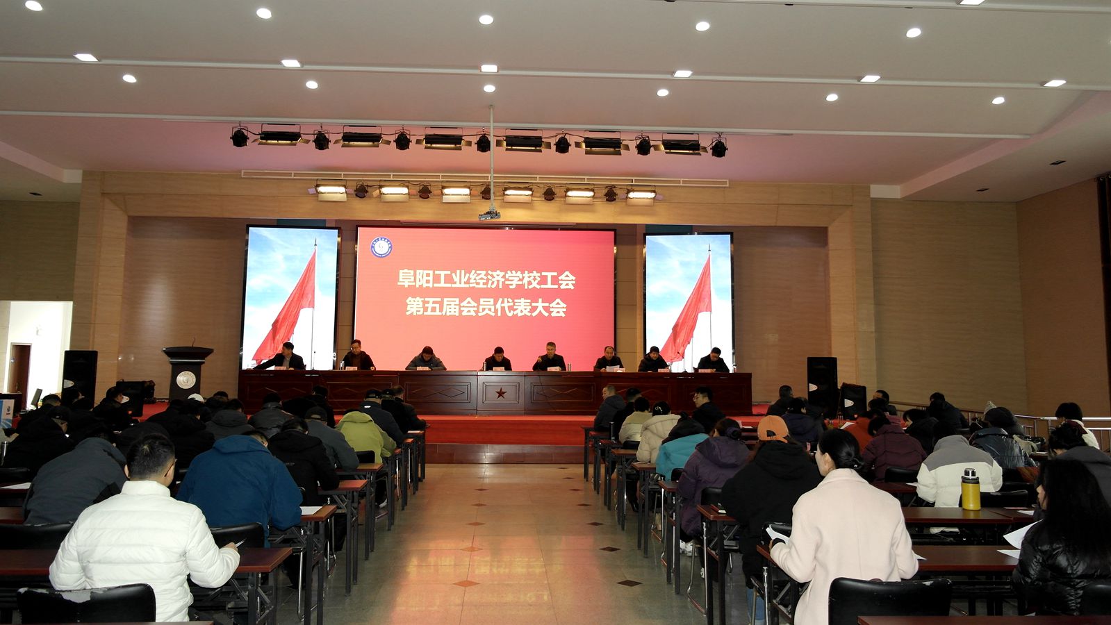 凝心聚力谋发展,担当作为谱新篇。12月14日,阜阳工业经济学校工会第五届会员代表大会第一次全体会议在多功能报告厅隆重召开。校党委书记周波,党委副书记、校长孙杰,部分党委委员及60名正式代表出席大会。部分科处室负责人作为特邀嘉宾列席大会。大会由校党委副书记、校长孙杰主持。