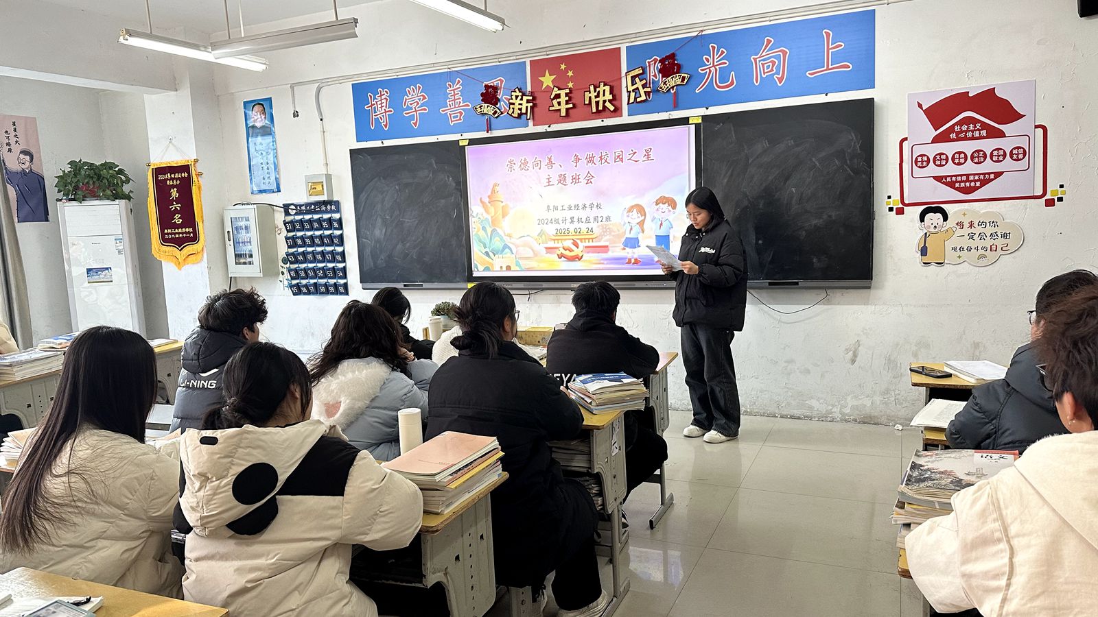 各班级积极响应,并于2025年2月24日下午第三节课开展了以“崇德立善,争当校园之星”为主题的宣传活动。通过主题班会的形式,向同学们详细介绍了评选活动的意义、标准和流程,激发了同学们的参与热情。同学们纷纷表示,将以“校园之星”为榜样,努力提升自我,争取在活动中脱颖而出。