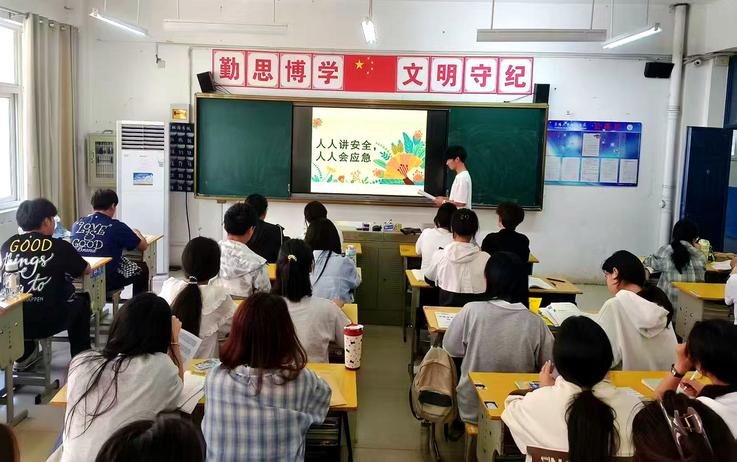 最后,班主任对本次班会进行了总结,并向同学们发出倡议,希望大家在日常生活中时刻保持安全意识,做到“人人讲安全、个个会应急”。学生们纷纷表示,通过这次班会,不仅学到了实用的安全知识和应急技能,还深刻认识到安全的重要性,今后一定会将所学知识运用到实际生活中,守护自己和他人的安全。