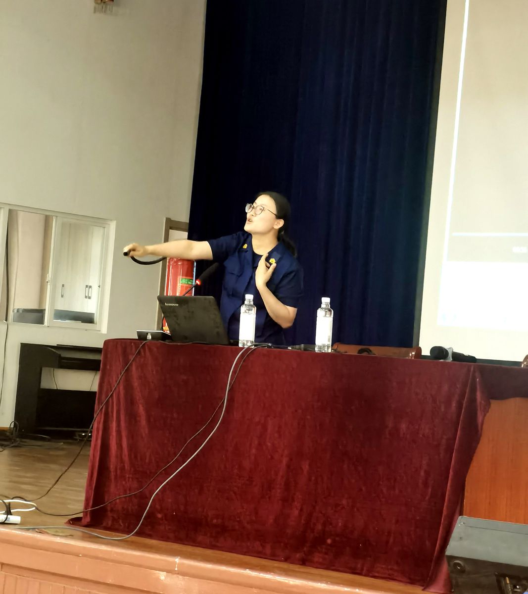 活动伊始,颍州区消防救援大队张层层教官对师生及后勤人员进行消防安全知识培训。张教官结合校园火灾案例,深入浅出地讲解了火灾的成因、危害以及预防措施,强调了校园消防安全的重要性。同时,详细介绍了灭火器、消火栓等消防器材的使用方法,并现场进行演示,让师生们直观地了解正确的操作步骤。在讲解过程中,消防员还通过互动问答的方式,激发师生们的学习兴趣,加深大家对消防知识的理解和记忆。