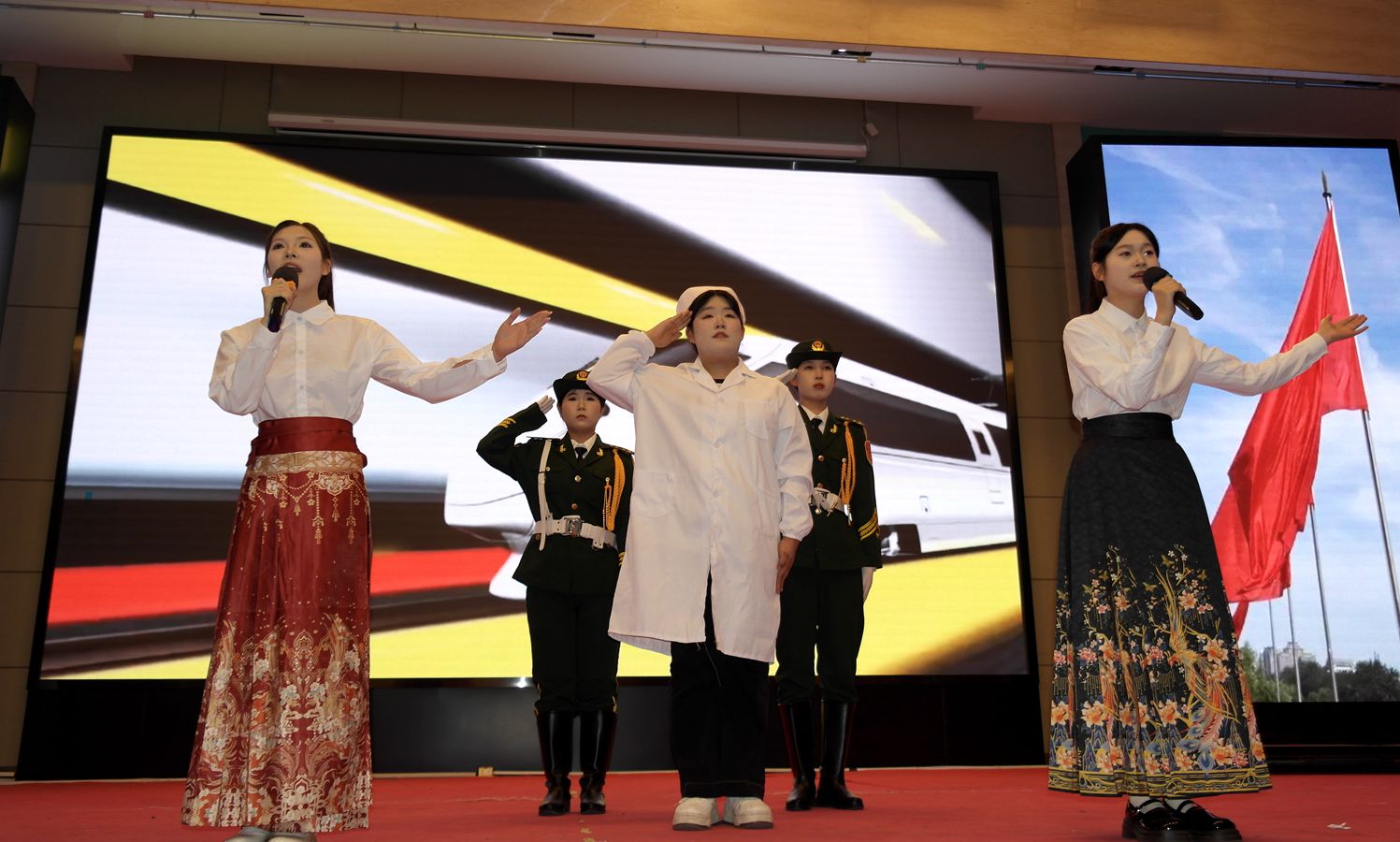比赛现场,参赛选手围绕"工匠精神"与"报国情怀"主题,通过诗歌、散文、原创作品等多种形式,深情讲述大国工匠的奋斗故事,讴歌时代楷模的爱国担当。其中,参赛作品《十七岁的红头巾》,2位同学在声情并茂的演绎中再现了革命先辈们的坚定信念和英勇无畏的精神,从战火纷飞,到盛世华章,那些17岁未及绽放的青春和未完成的理想,都把17岁的答案,刻进祖国的脉搏,同频共进,共铸辉煌!选手们的精彩表现赢得现场师生阵阵掌声。