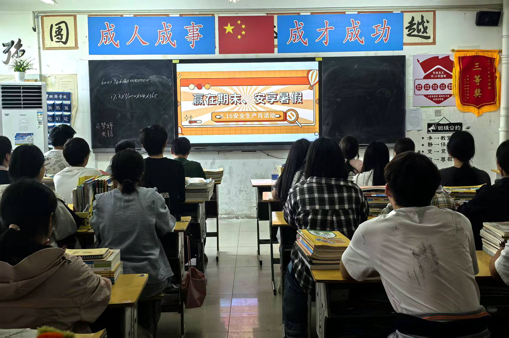 6月16日下午第3节课,阜阳工业经济学校学生科组织两校区全体班级开展“赢在期末,安度暑假”主题班会,东校区以集中宣讲、南校区以班级为单位的形式,为学生的期末冲刺与暑期生活筑牢安全与成长“双防线”。
