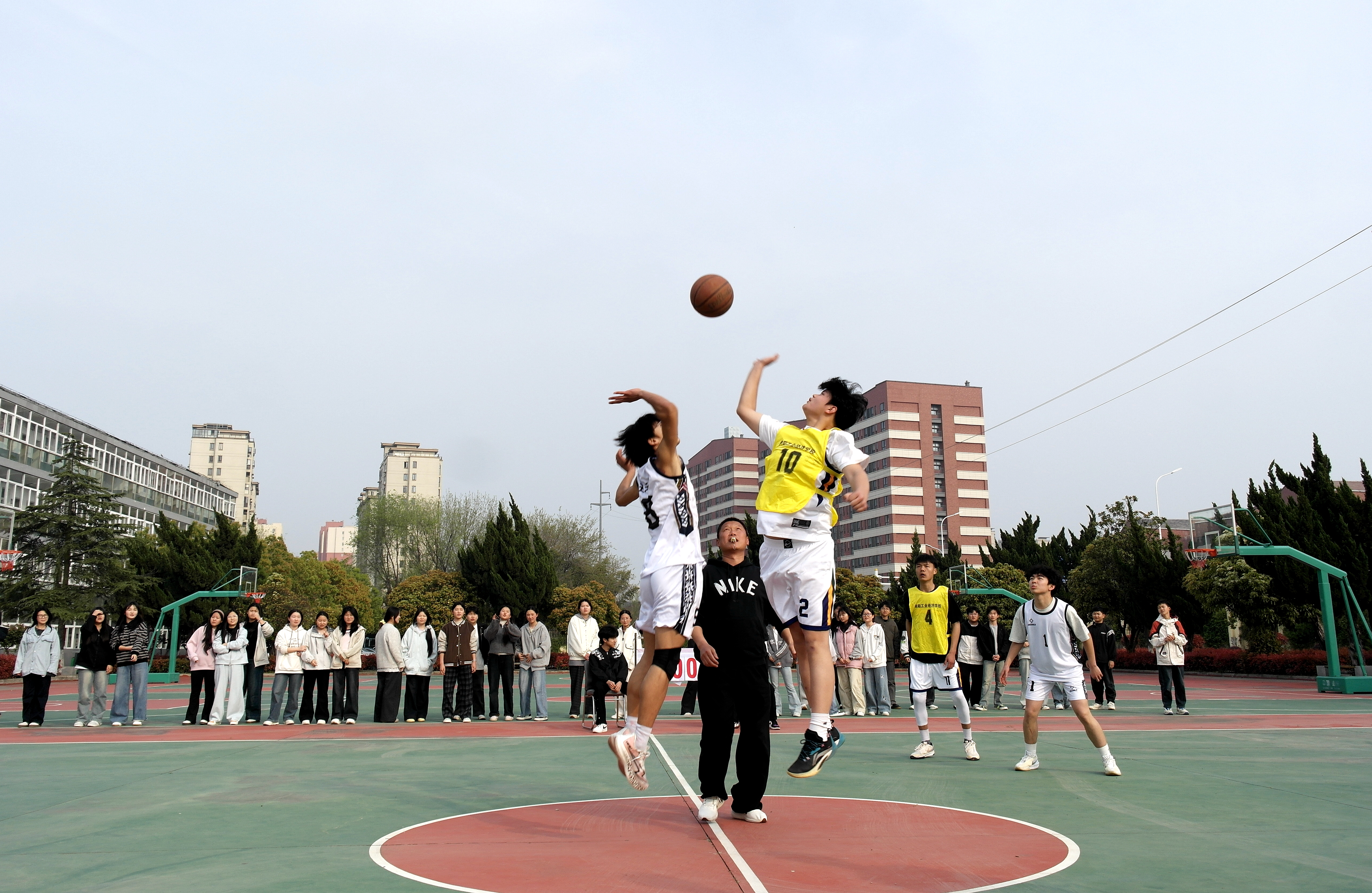 赛前,两校负责人围绕校园体育文化建设、学生体育素养培育等工作展开简短交流,大家一致表示,希望以本次篮球交流为契机,搭建两校常态化沟通桥梁。