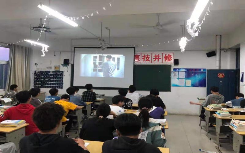 阜阳工业经济学校组织各班级学生观看“资助育人 .大国工匠进校园”活动