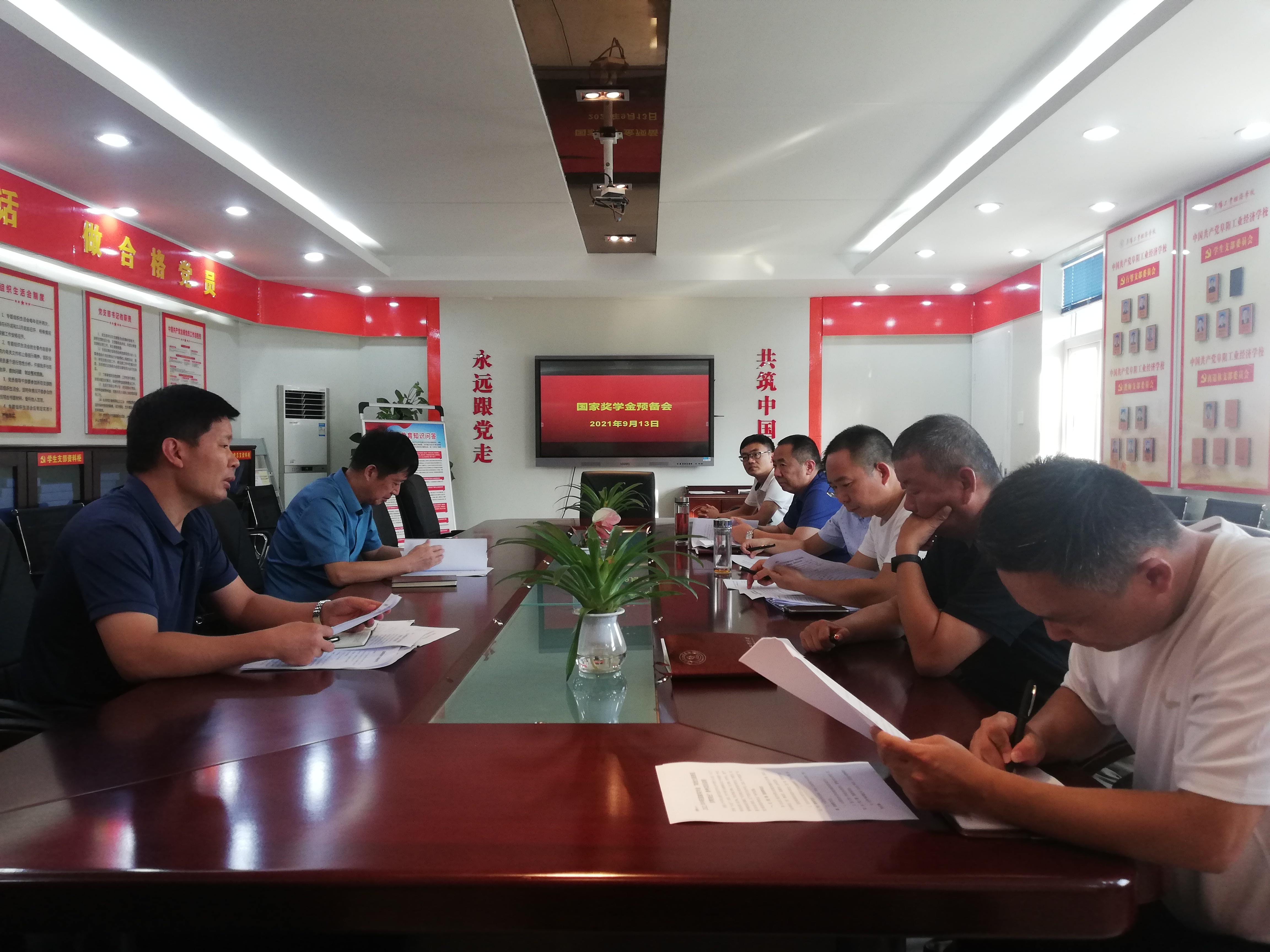2021年9月13日下午在校办公楼四楼会议室召开了阜阳工业经济学校国家奖学金评审工作预备会。