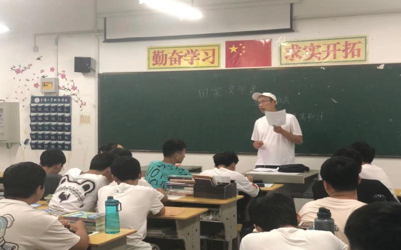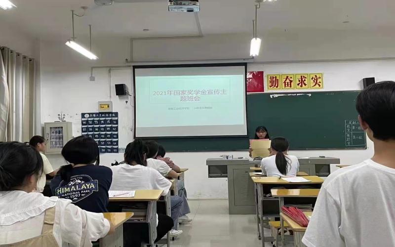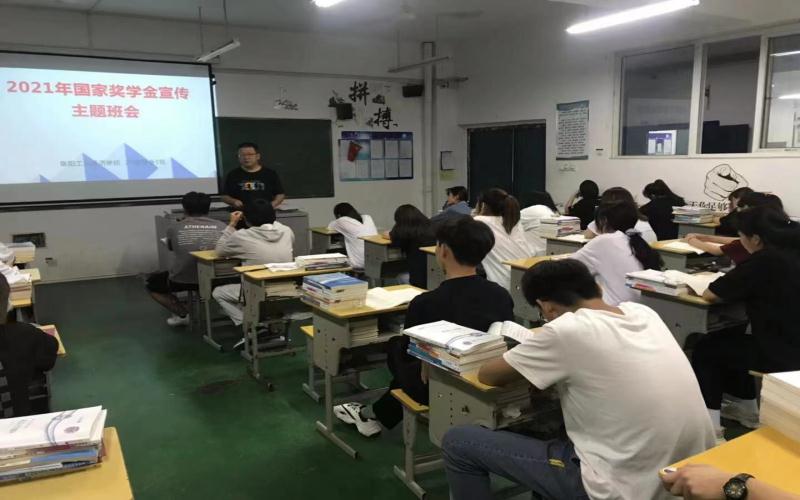 阜阳工业经济学校各班级按校资助办要求利用晚自习时间召开2021年国家奖学金宣传主题班会。系统地讲解了国家奖学金的申请条件、评选标准、评审制度、申报流程及相关注意事项。并提醒符合条件的同学们尽快办理奖学金相关事宜。