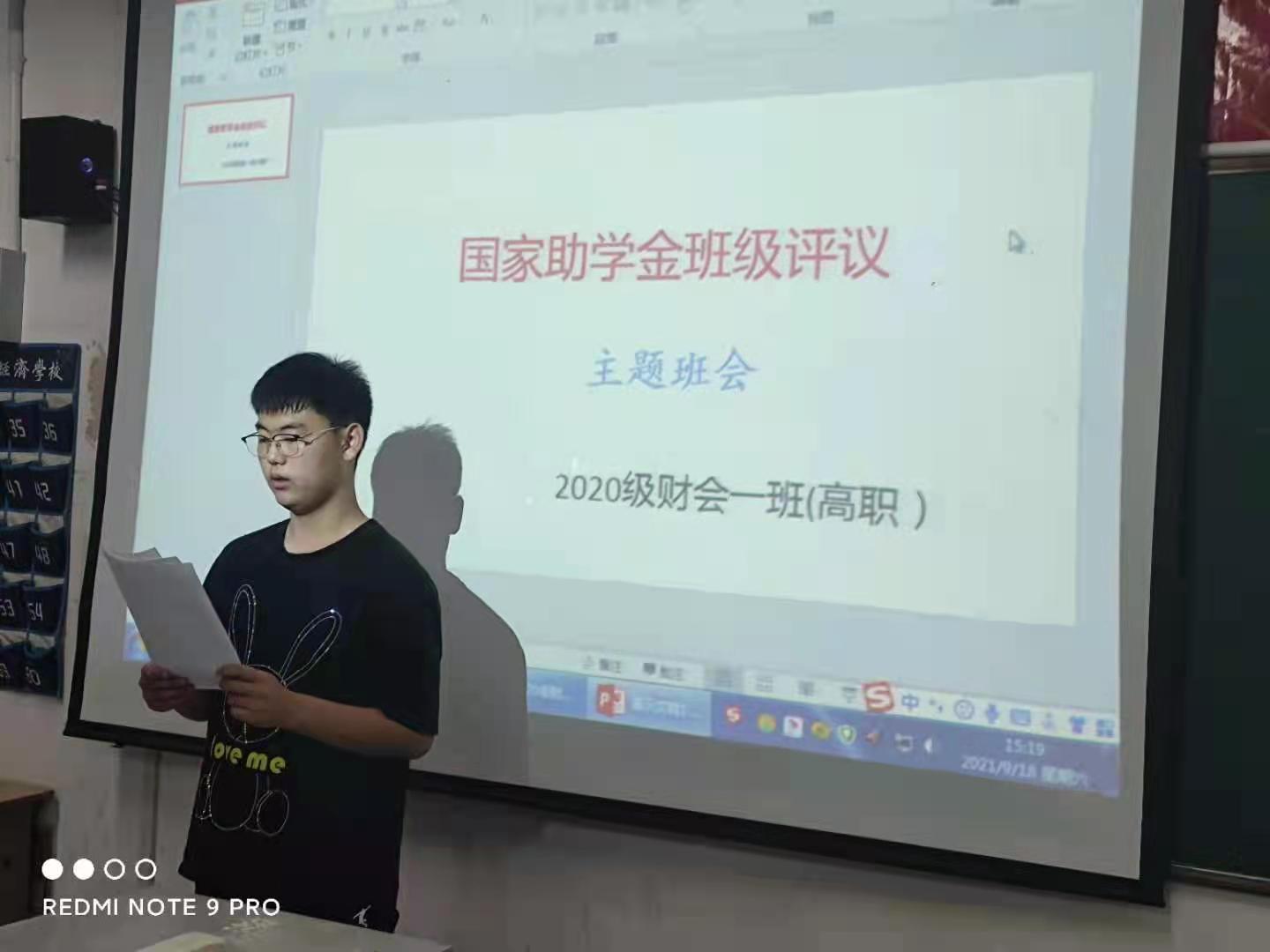阜阳工业经济学校2021年秋季学期家庭经济困难学生班级评审认定工作正式启动。各班级利用晚自习时间召开国家助学金家庭经济困难学生评审认定会,班主任系统地讲解了国家助学金的认定办法、申请条件、标准、评审、申报流程及相关表格填写注意事项。