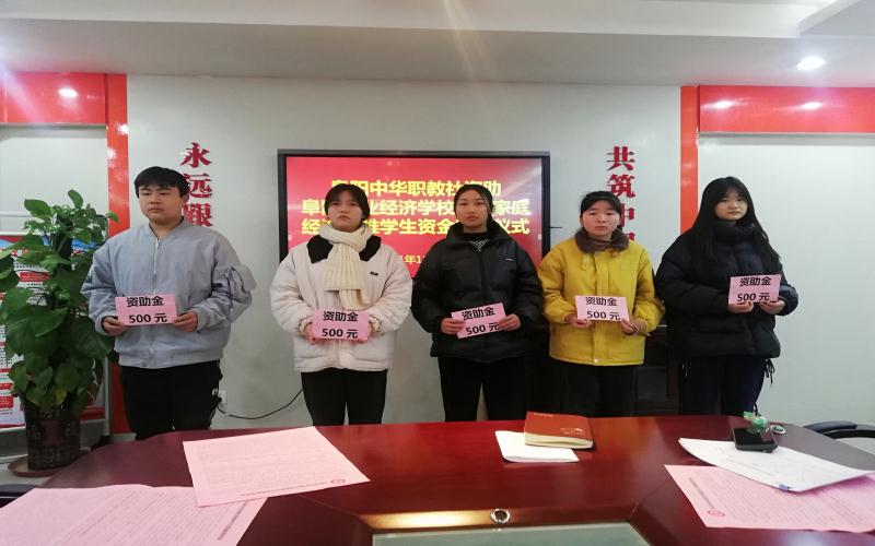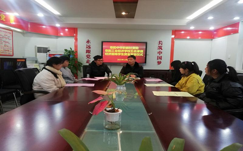 阜阳工业经济学校五名贫困家庭学生资助金发放仪式