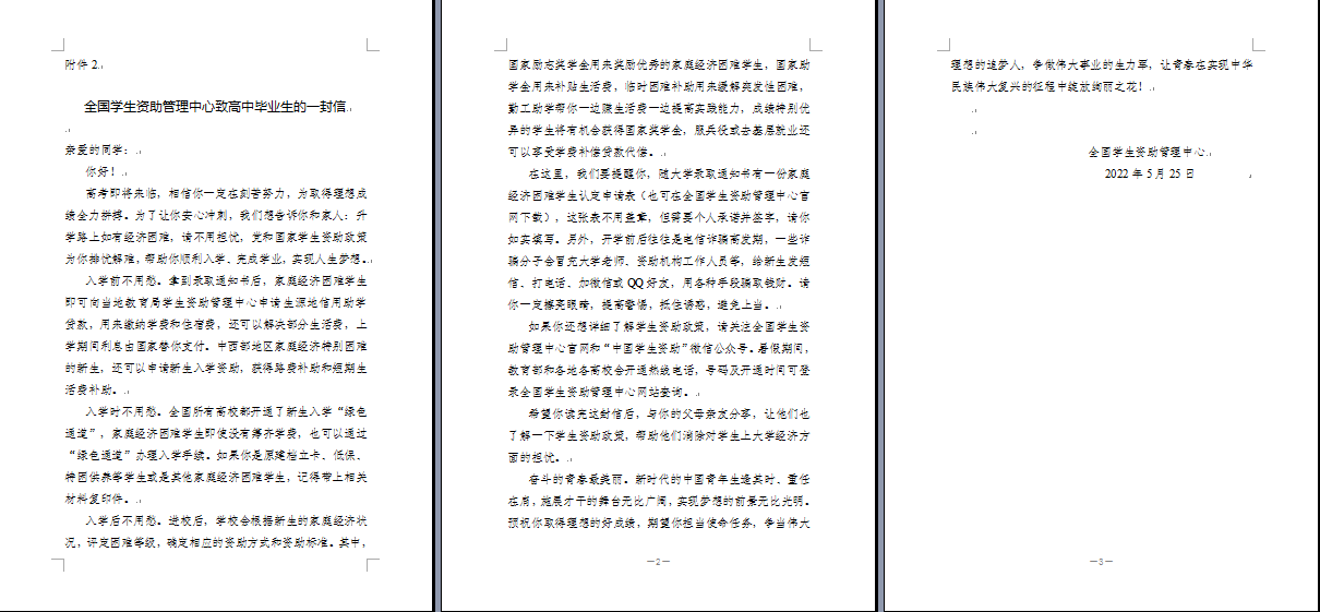 转发《全国学生资助管理中心致高中毕业生的一封信》