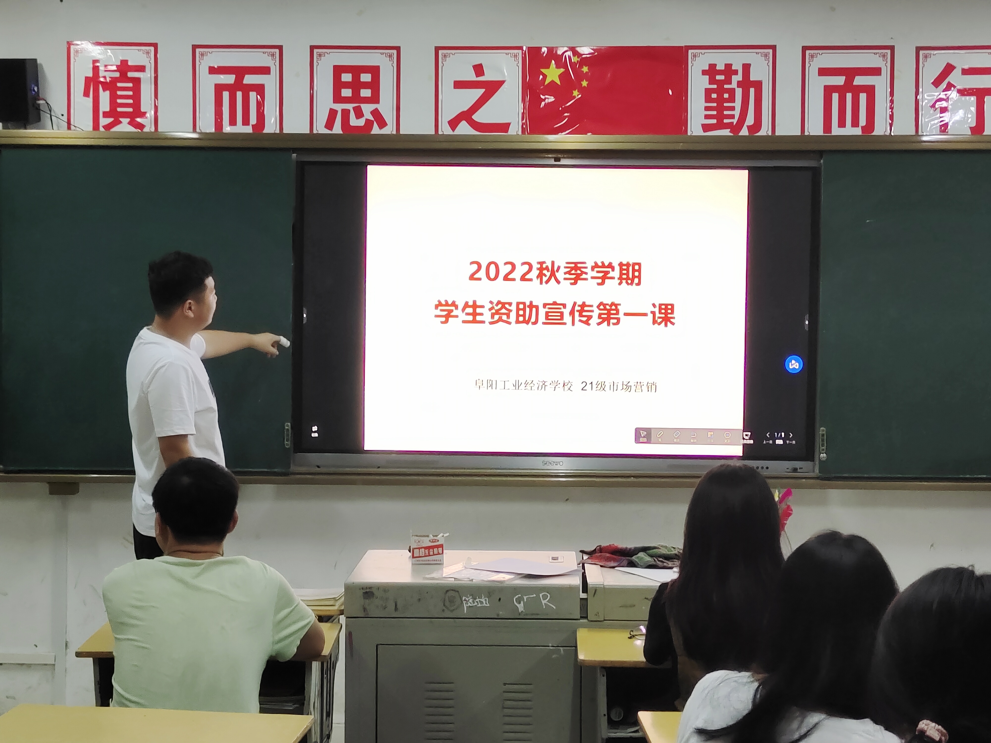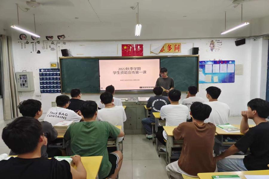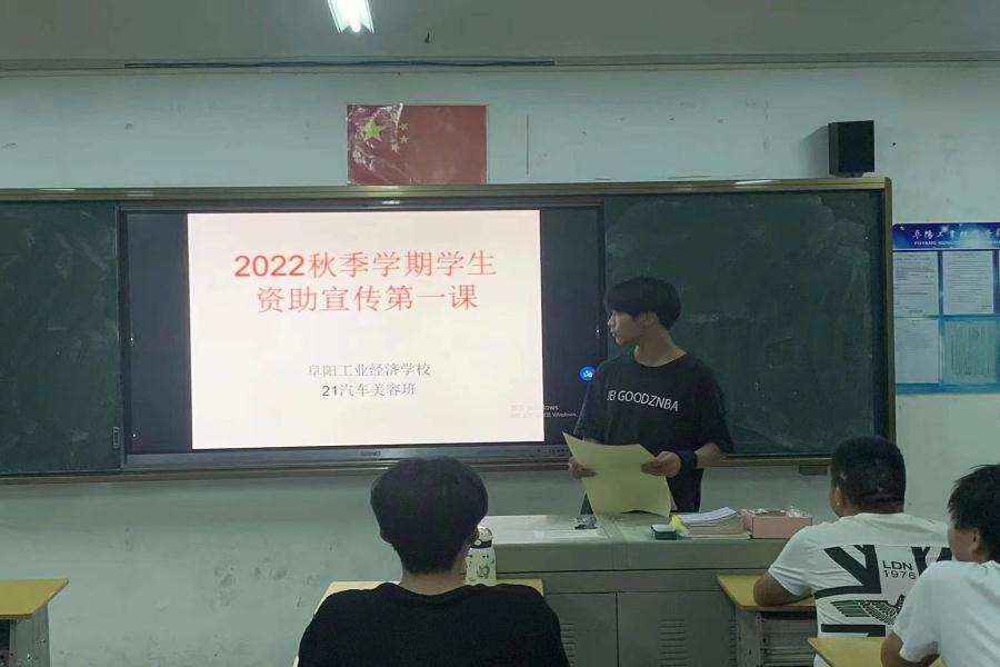 阜阳工业经济学校2022年秋季新学期各班级利用晚自习时间开展了学生资助政策宣传第一课主题班会活动。