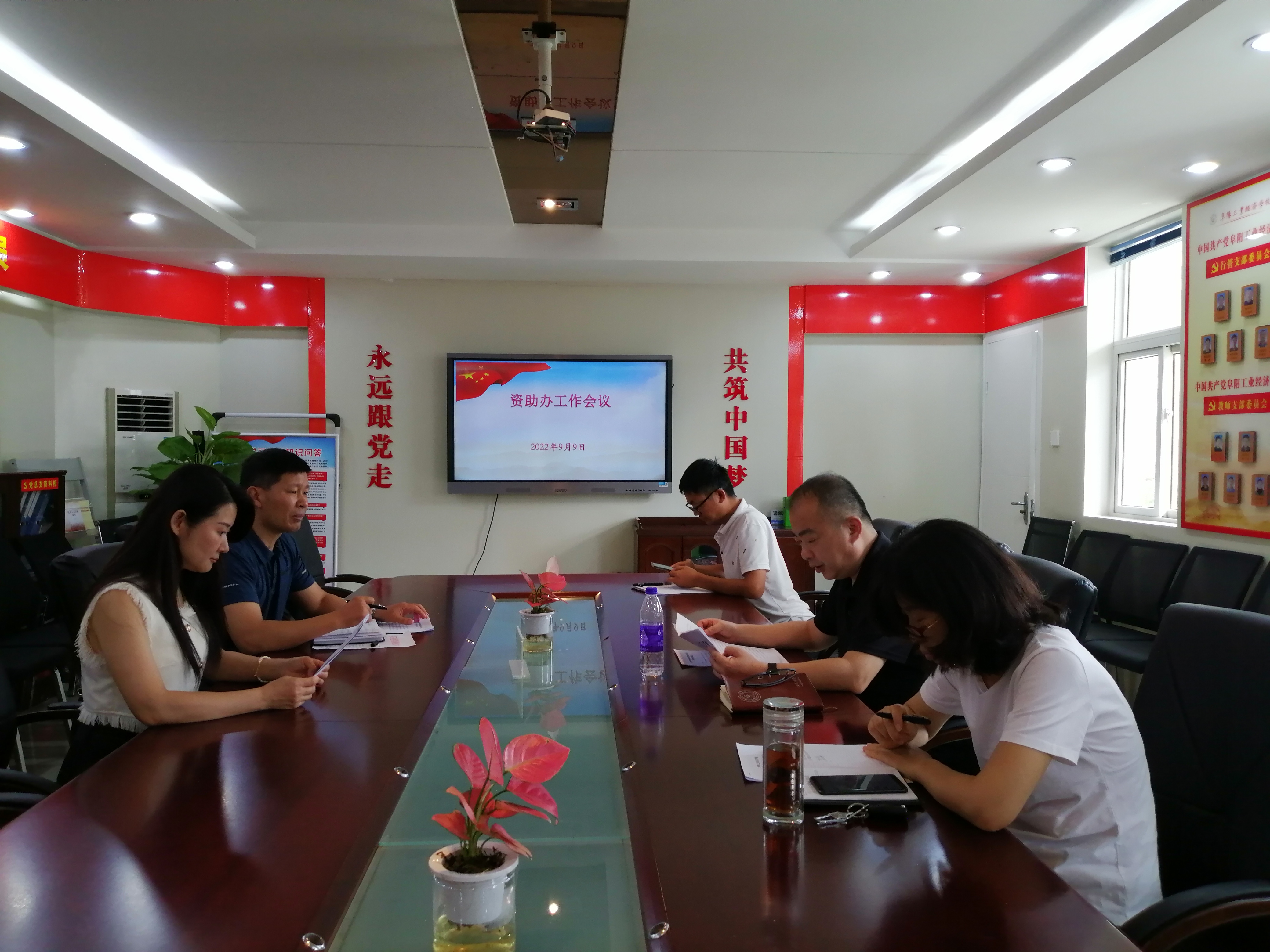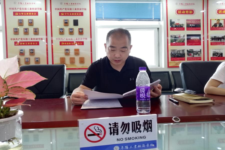 阜阳工业经济学校资助办于新学期99日下午在四楼会议室召开科室工作会议,会议由姜亮主任主持。