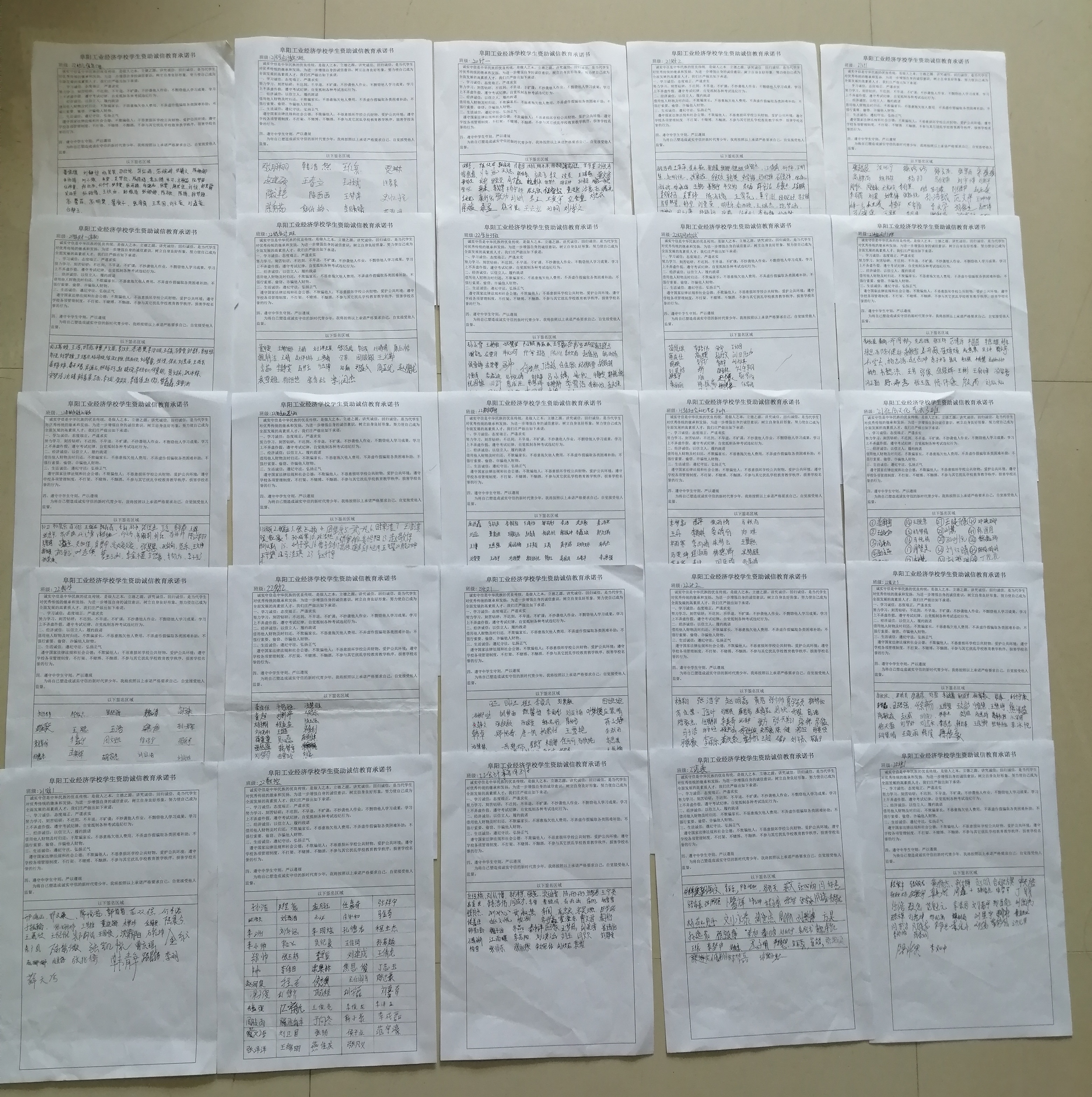 阜阳工业经济学校资助诚信教育系列活动之---学生资助诚信教育承诺书签名活动