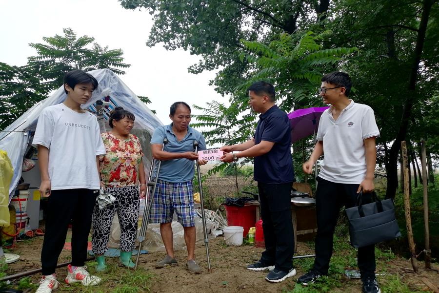 在临泉县姜寨镇张同学家里,其父外出打工一月前遭遇车祸,母残疾,双侧股骨头坏死,经济压力大,负担较重。姜亮给其家庭送上了学校的资助慰问金,并与张同学的父母亲切交谈,鼓励他们放宽心态,早日战胜病魔。