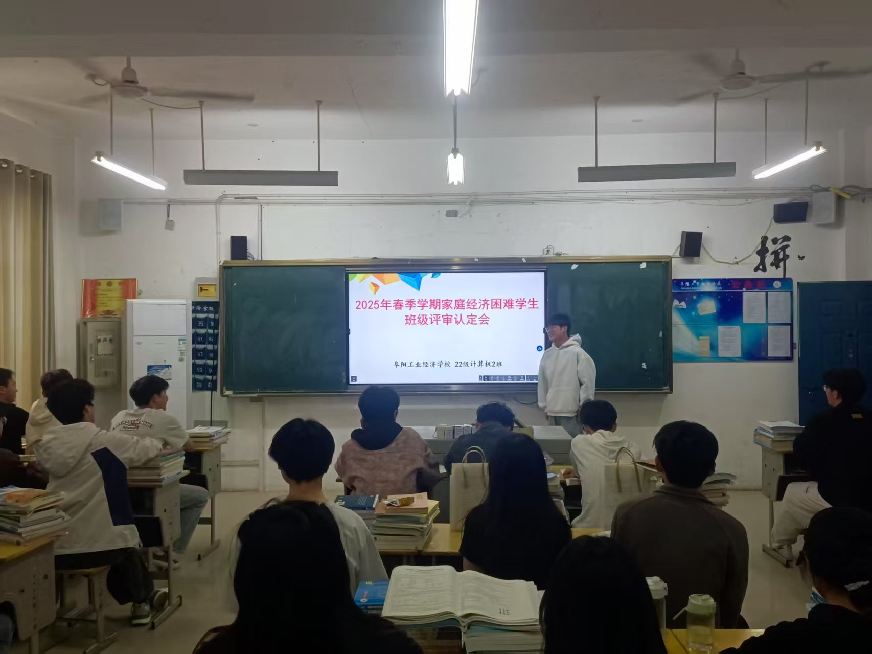 阜阳工业经济学校2025年春季学期根据皖财教[2024]1252号文件、阜财教[2025]42号文件通知要求正式启动家庭经济困难学生班级评审认定工作。各班级按照校资助办公室工作要求利用晚自习时间召开国家助学金家庭经济困难学生评审认定会,班主任系统地讲解了国家助学金的认定办法、申请条件、标准、评审、申报流程及相关表格填写注意事项。